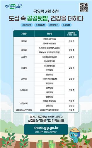 경기도는 3일부터 공공자원 통합예약시스템 경기공유서비스를 통해 2025년 경기도 공공텃밭 분양신청을 받는다.