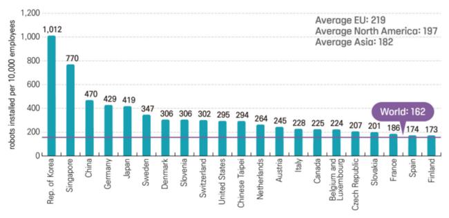 제조분야 로봇 밀도_대한민국이 세계 1위 (이미지=국제로봇연맹, IFR)