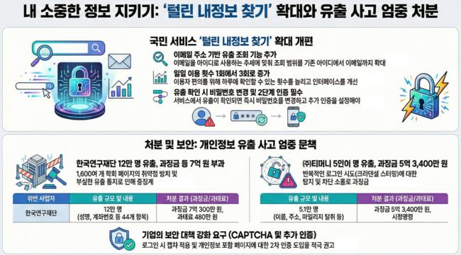 정부는 공공기관인 한국연구재단과 민간기업인 (주)티머니에서 발생한 대규모 개인정보 유출 사고에 대해 7억 원 및 5억 원 규모의 과징금을 부과했다.