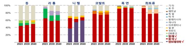 중국은 갈륨‧저마늄 등 주요 핵심광물을 2023년부터 수출통제, 인도네시아는 2020년부터 니켈 원광을 수출금지, 칠레는 자국 기업이 주도하여 리튬을 생산하고 있다.
