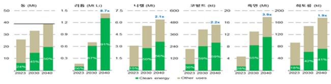 핵심광물 수요 현황/전망 (자료=국제에너지기구 IEA)