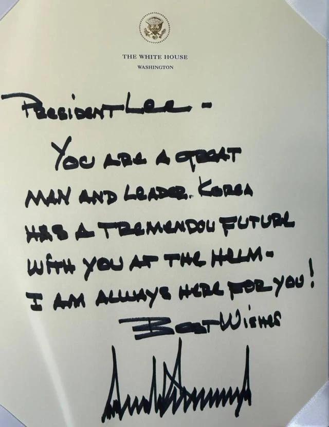도널드 트럼프 대통령의 친필 메시지