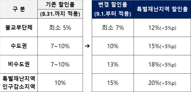 기존 5%에서 10% 할인율을 적용한 지역사랑상품권을 7%에서 15%까지 높이고, 특별재난지역에는 최대 20% 할인율 혜택을 적용한다.