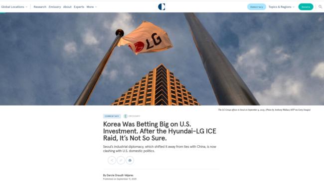 「Korea Was Betting Big on U.S. Investment. After the Hyundai-LG ICE Raid, It’s Not So Sure.」